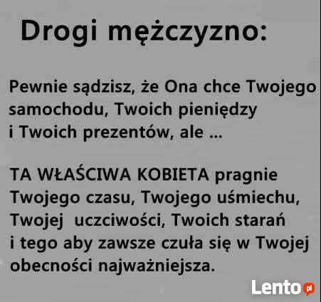 Czy naprawdę nie ma już normalnych, samotnych mężczyzn? który chce poznać normalną kobietę? Czas ucieka może warto sie poznać.... Pan w wieku 56-64..... . Jestem kobietą która popala papieroski jeżeli nie tolerujesz... NIE PISZ.. A jeżeli zdecydujesz się napisać to proszę o informację w jakim wieku jesteś i skąd. Pozdrawiam serdecznie.. J.Sprawdź zainteresowanie tym ogłoszeniem